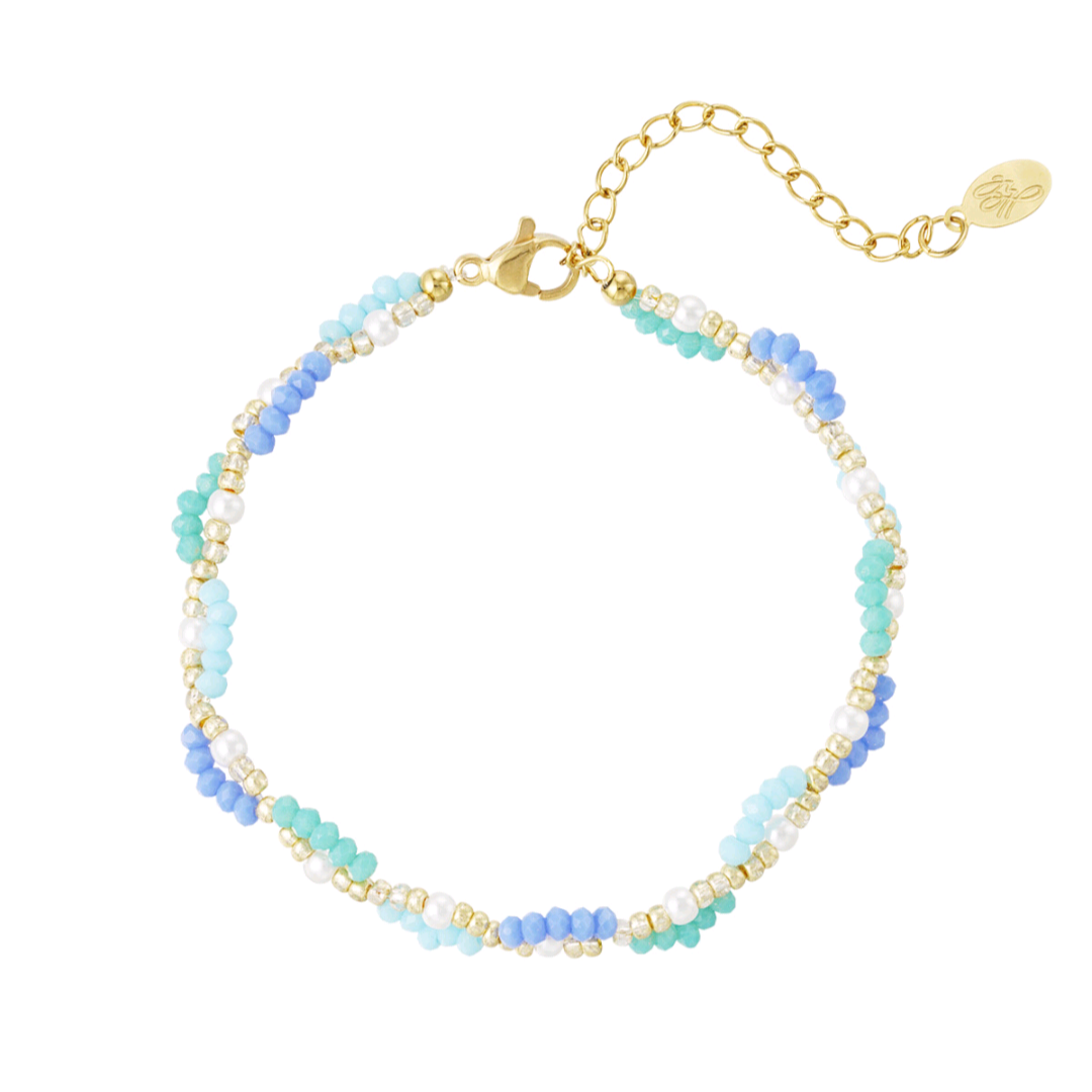 Hoe leuk is deze armbanden met verschillende kleurtjes? Een leuke toevoeging aan jouw armbanden party. De armband is gemaakt van glas, parels (geen echte parels) en stainless steel. De afmeting van de armband is 16 centimeter, en hij kan met 5 centimeter versteld worden.