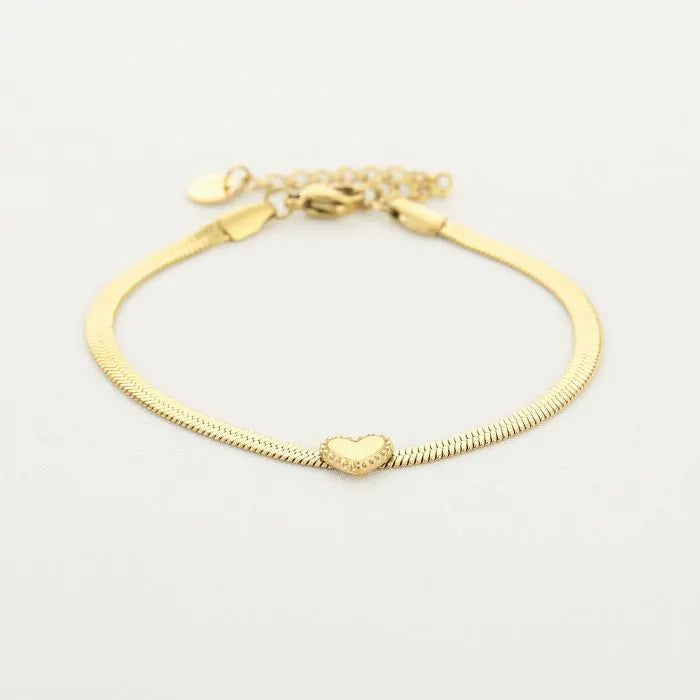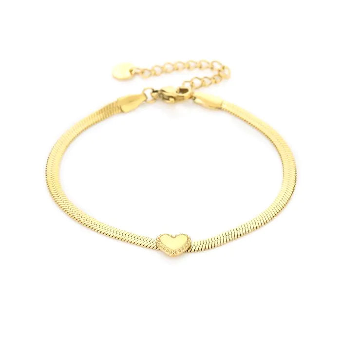 Platte armband met hartje - goud