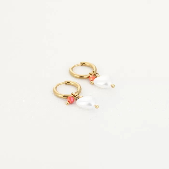 Hartjes parel oorbellen oranje - goud