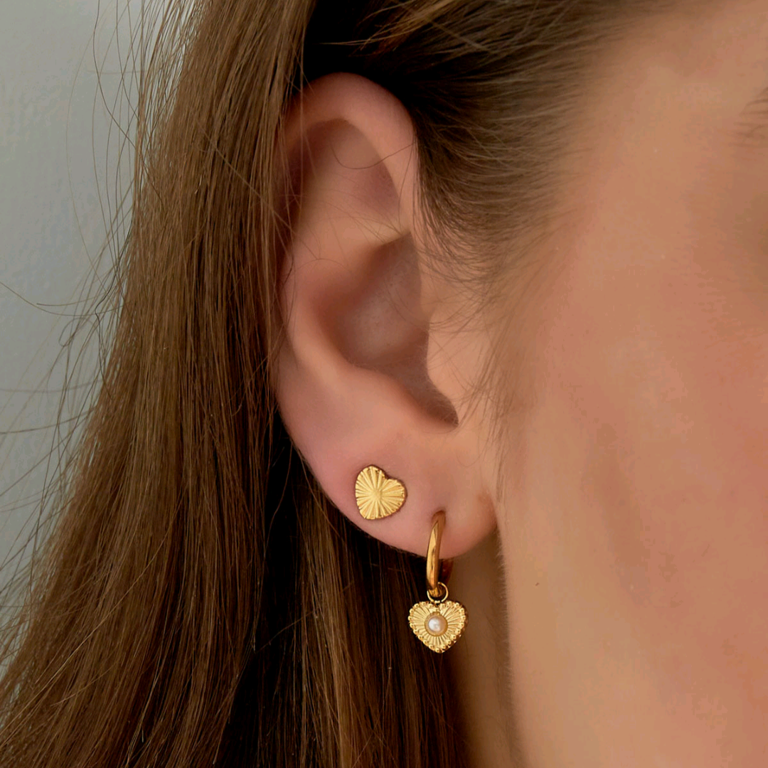 Hartjes vormige oorbellen met patroon - goud