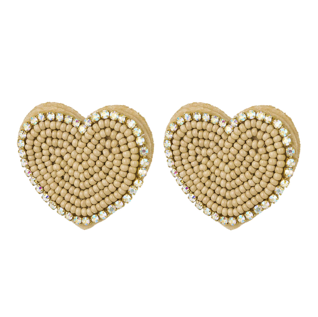 Kralen oorbellen hart - beige
