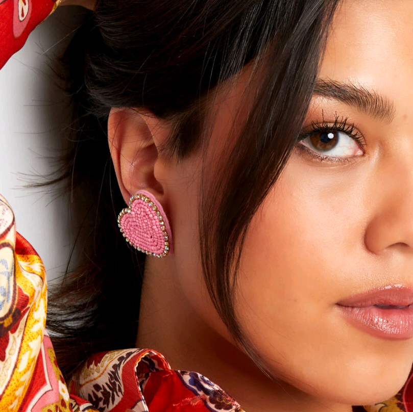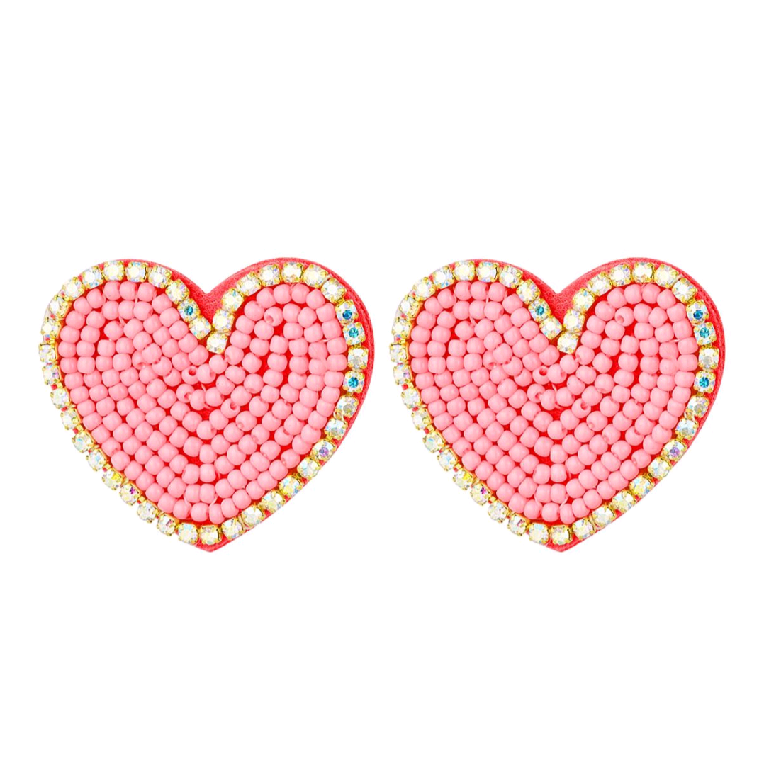 Hoe leuk zijn deze kralen oorbellen in de vorm van een hart met strass in de kleur koraal. Deze oorbellen zijn superleuk als statement oorbellen te dragen en maken jouw outfit helemaal compleet! De oorbellen zijn gemaakt van glaskralen, Stainless Steel, strass steentjes en stof en hebben een afmeting van 6 cm.