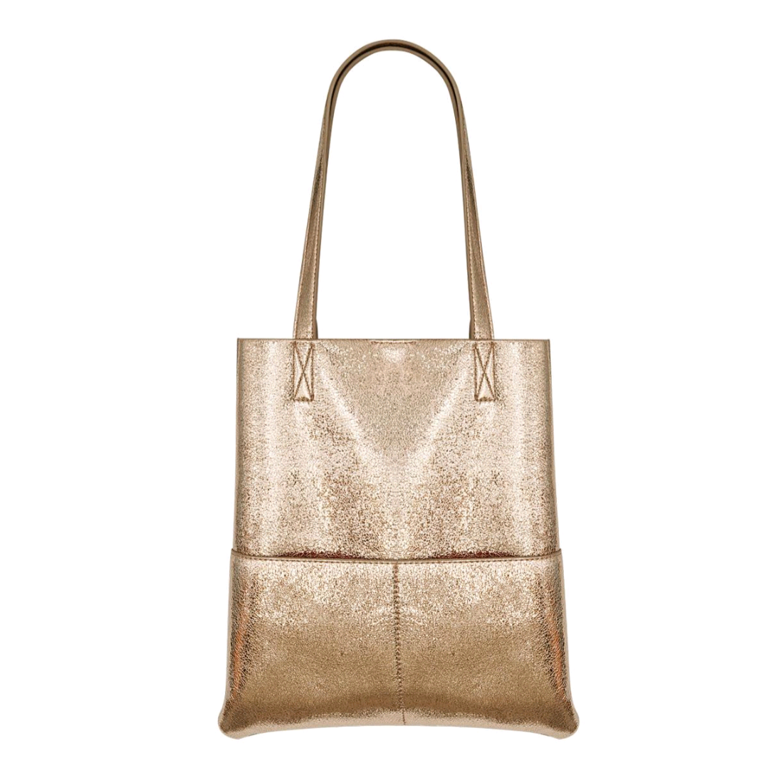 Hoe leuk is deze toffe metallic shopper in de kleur goud! De metallic stof is momenteel helemaal trendy. De tas is eenvoudig te sluiten met een magneetsluiting De afmetingen van de tas zijn 35 x 30 cm en is voorzien van een klein tasje. De metallic shopper is gemaakt van 50% PU en 50% polyester. Erg leuk om deze tas te stylen met meerdere goud-kleurige accessoires.