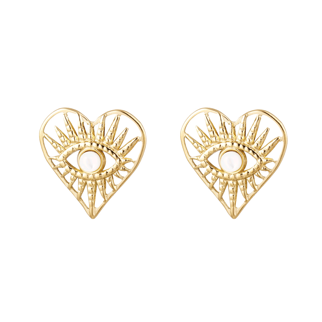 Houd jij van leuke paar statement oorbellen? Dan is dit gouden paar oorbellen in de vorm van een oog met hart echt een aanrader! De oorbellen zijn perfect te dragen naar een festival of leuk feestje en kunnen met oneindig veel leuke sieraden en tassen gecombineerd worden. De oorbellen zijn gemaakt van Stainless steel en zeeschelp en hebben een afmeting van 2,2 cm. Verkrijgbaar in de kleuren: goud & zilver.