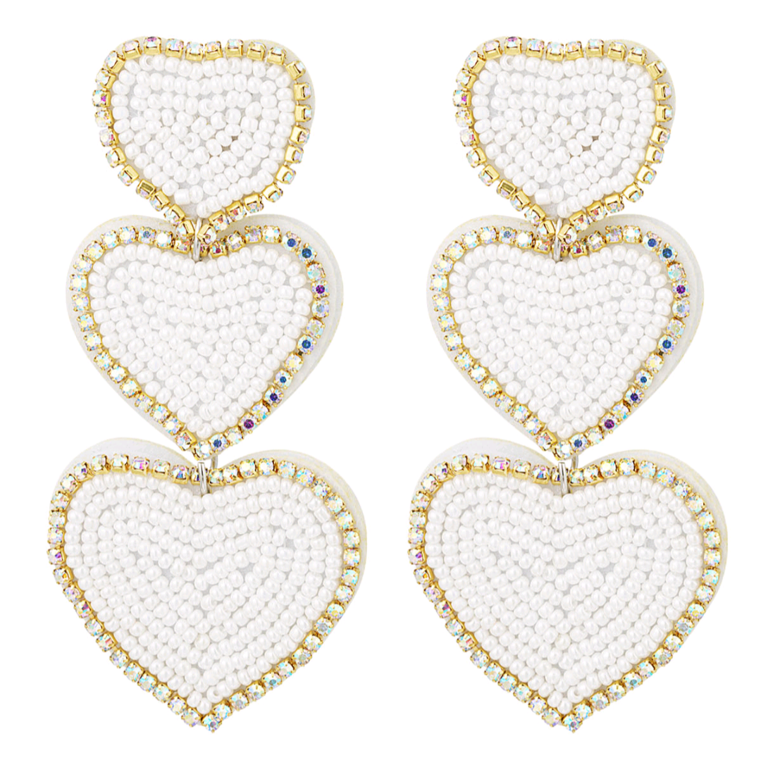 Oorbellen kralen 3x hart - wit