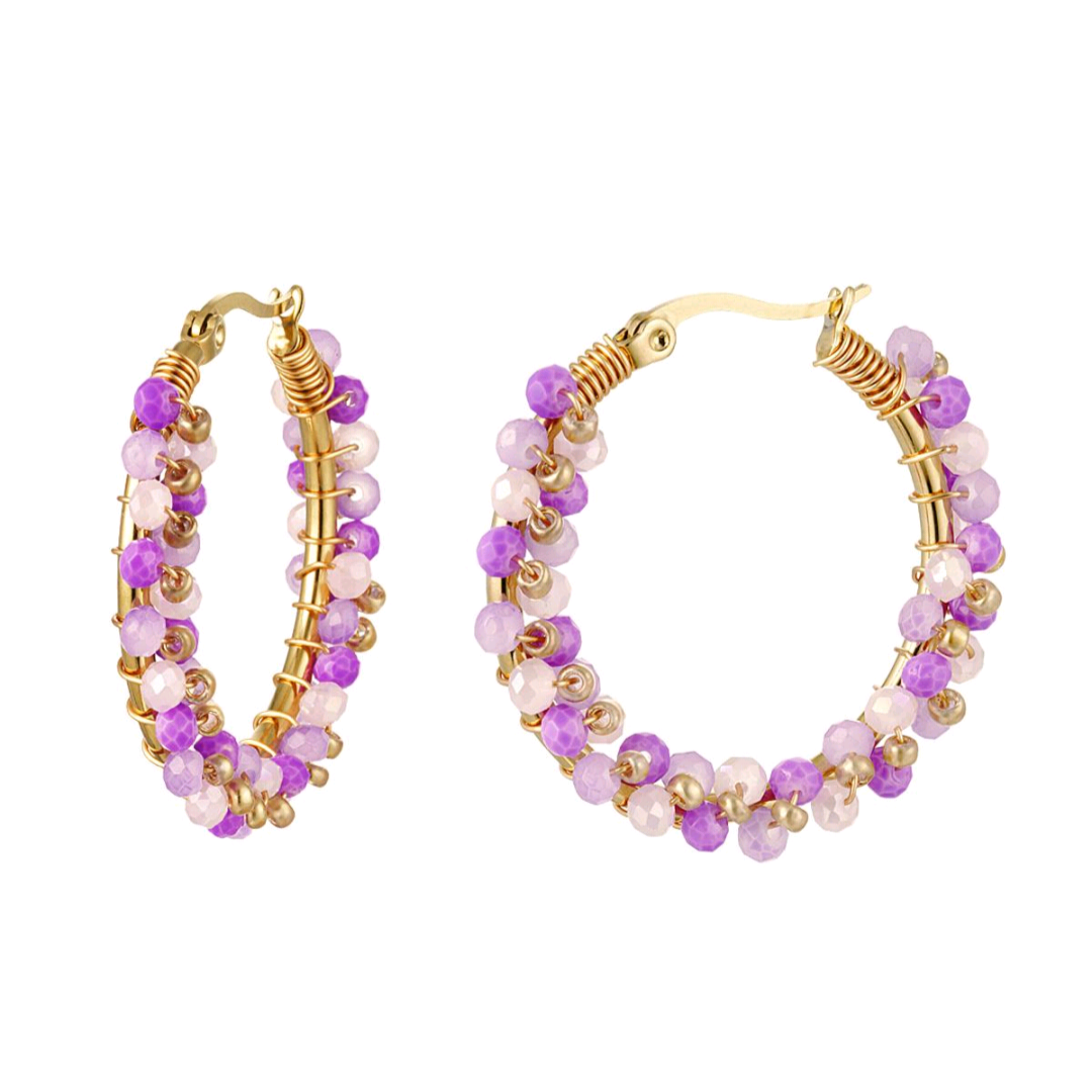Wij zijn helemaal verliefd op deze prachtige oorbellen in de kleur paars! Stijl deze oorbellen met neutrale sieraden voor een casual look. Ben jij meer op zoek naar een statement look? Combineer dan oorbellen kralen party met meerdere gekleurde sieraden! Deze oorbellen zijn gemaakt van stainless steel, glaskralen en kristalkralen en hebben een afmeting van 3,5 cm.