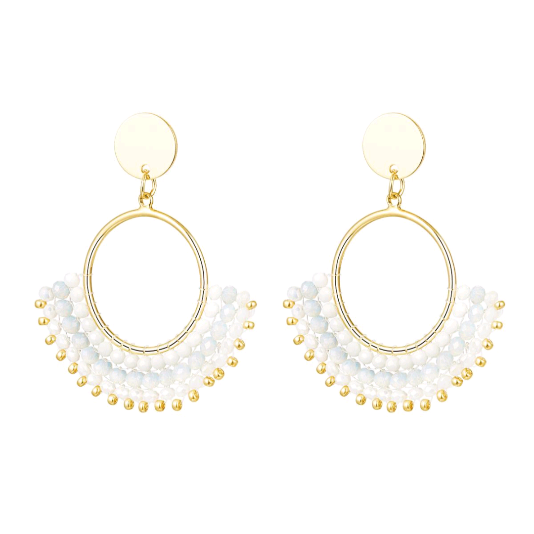 Hoe leuk zijn deze oorbellen met kristalkralen in de kleur wit! Van deze prachtige oorbellen wordt je toch meteen vrolijk! De oorbellen zijn gemaakt van koper en kristalkralen en hebben een afmeting van 5 cm. Oorbellen met kristalkralen zijn eenvoudig in te doen en maken jouw outfit helemaal compleet.