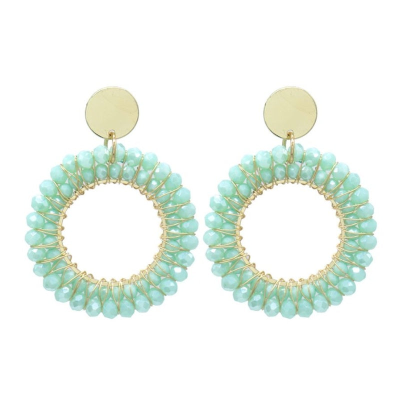 Oorbellen dubbellaags kralen - blauw/turquoise