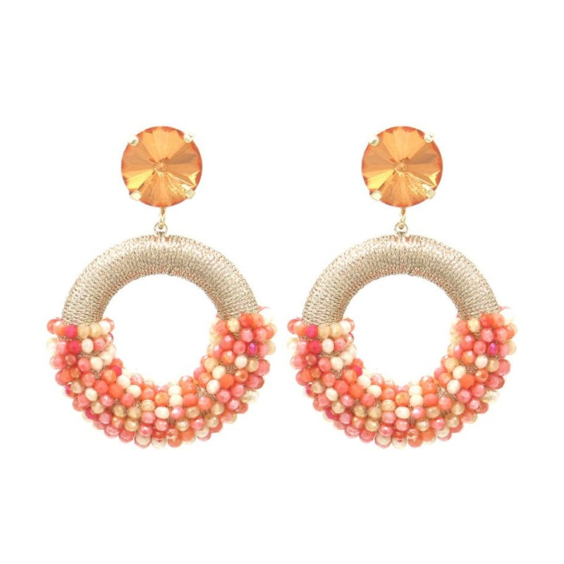Oorbellen rond glaskralen - oranje