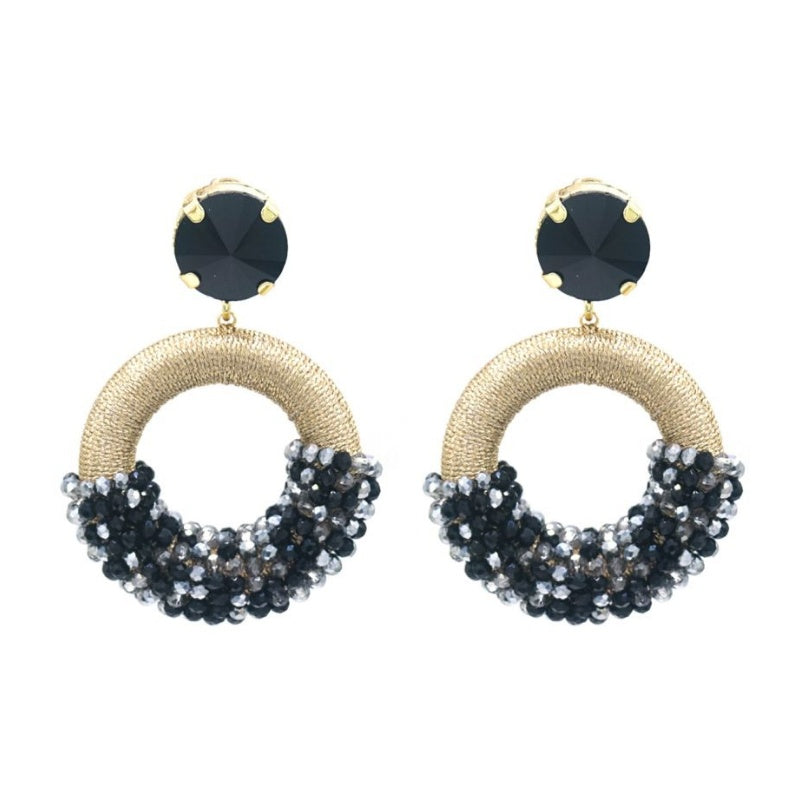 Oorbellen rond glaskralen - zwart