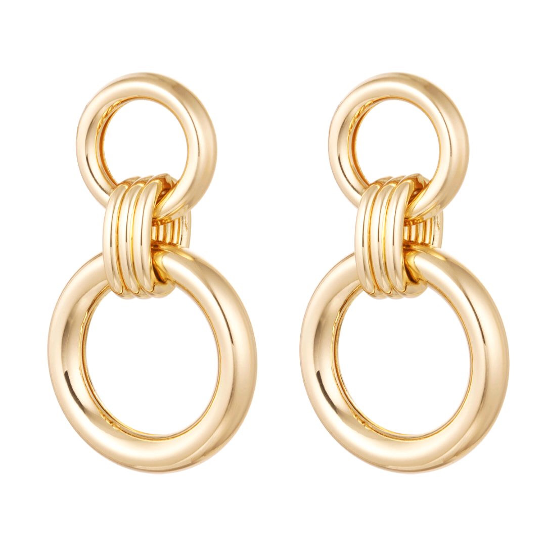 Trend alert!! Hoe leuk zijn deze gouden oorbellen in de vorm van drie verbonden cirkels. Superleuk en mega trendy! Erg leuk om deze oorbellen te combineren met meerdere sieraden met steentjes. De oorbellen zijn gemaakt van metaal. De oorbellen hebben een afmeting van 4,5 cm en shop je in de kleuren zilver en goud.