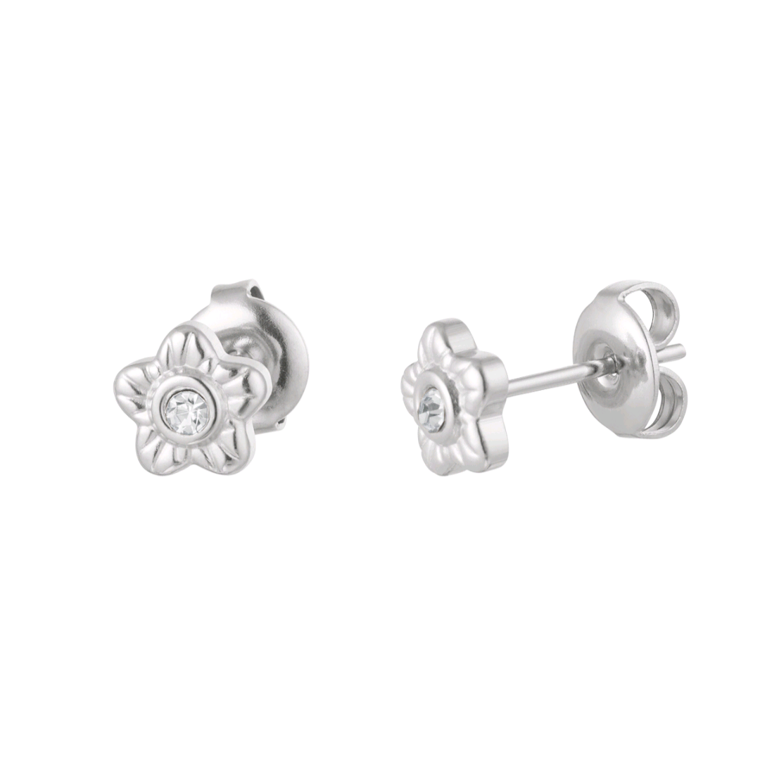 Oorstekers bloem zijn gemaakt van Stainless steel in combinatie met strass steentjes en hebben een afmeting van 0,7 cm. Verkrijgbaar in de kleuren zilver en goud.
