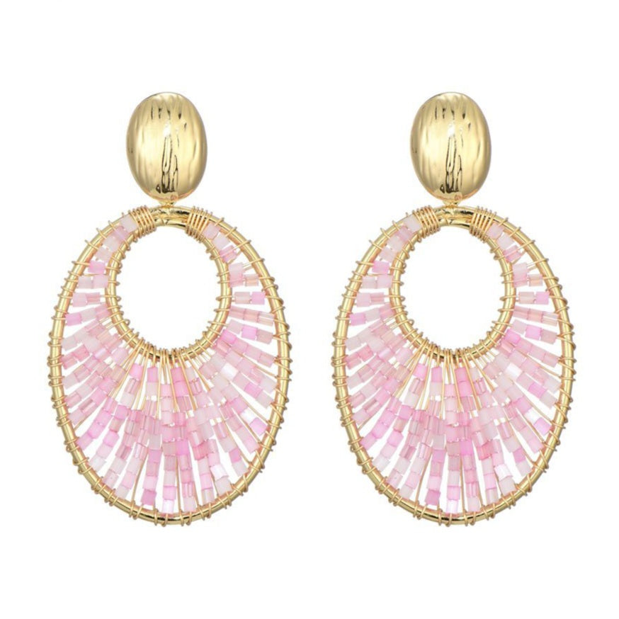 Oorstekers kralen goud - roze