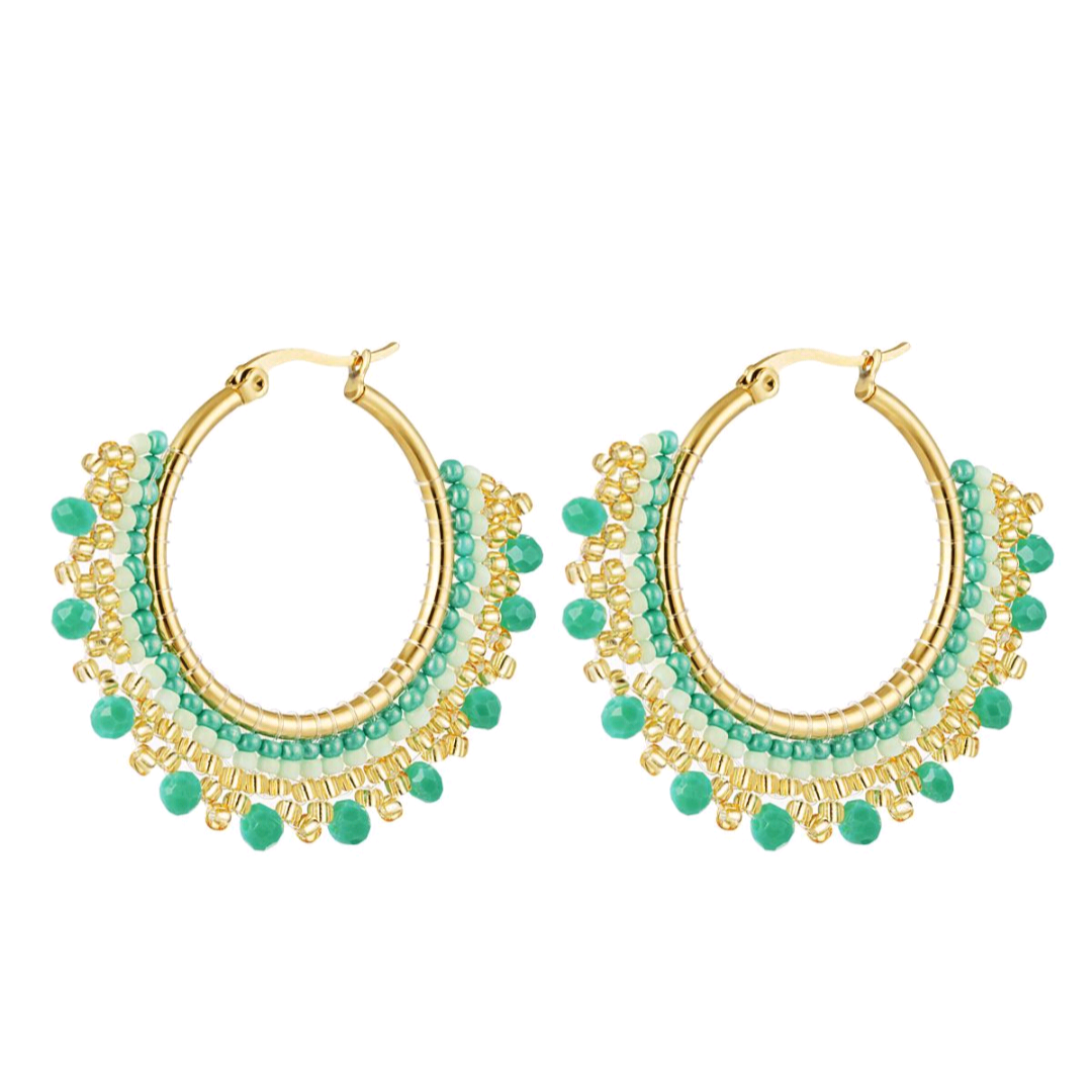 Wij zijn helemaal verliefd op deze prachtige en vrolijke oorbellen in de kleur groen! Stijl deze oorbellen met neutrale sieraden voor een casual look. Ben jij meer op zoek naar een statement look? Combineer dan oorbellen party met meerdere gekleurde sieraden! Deze oorbellen zijn gemaakt van stainless steel, glaskralen en kristalkralen en hebben een afmeting van 4,5 cm.