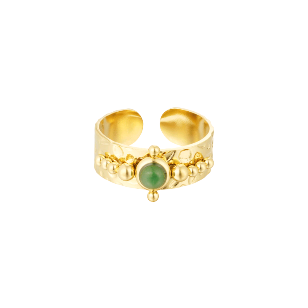 Ben jij net als ons helemaal verliefd op een prachtige ring party? Shop dan snel deze prachtige gouden ring met groene steen in het midden en versiersel, mega leuk! Daarnaast is deze ring perfect te combineren met meerdere ringen en kun jij een super leuke ring party maken! Ook leuk om deze ring te dragen met meerdere sieraden met steentjes. De ring is gemaakt van stainless steel in combinatie met steen en is one size. Doordat de ring one size is, kun je de ring perfect vormen naar elke vinger die jij wilt. Verkrijgbaar in de te leuke kleurtjes: groen, roze en beige.