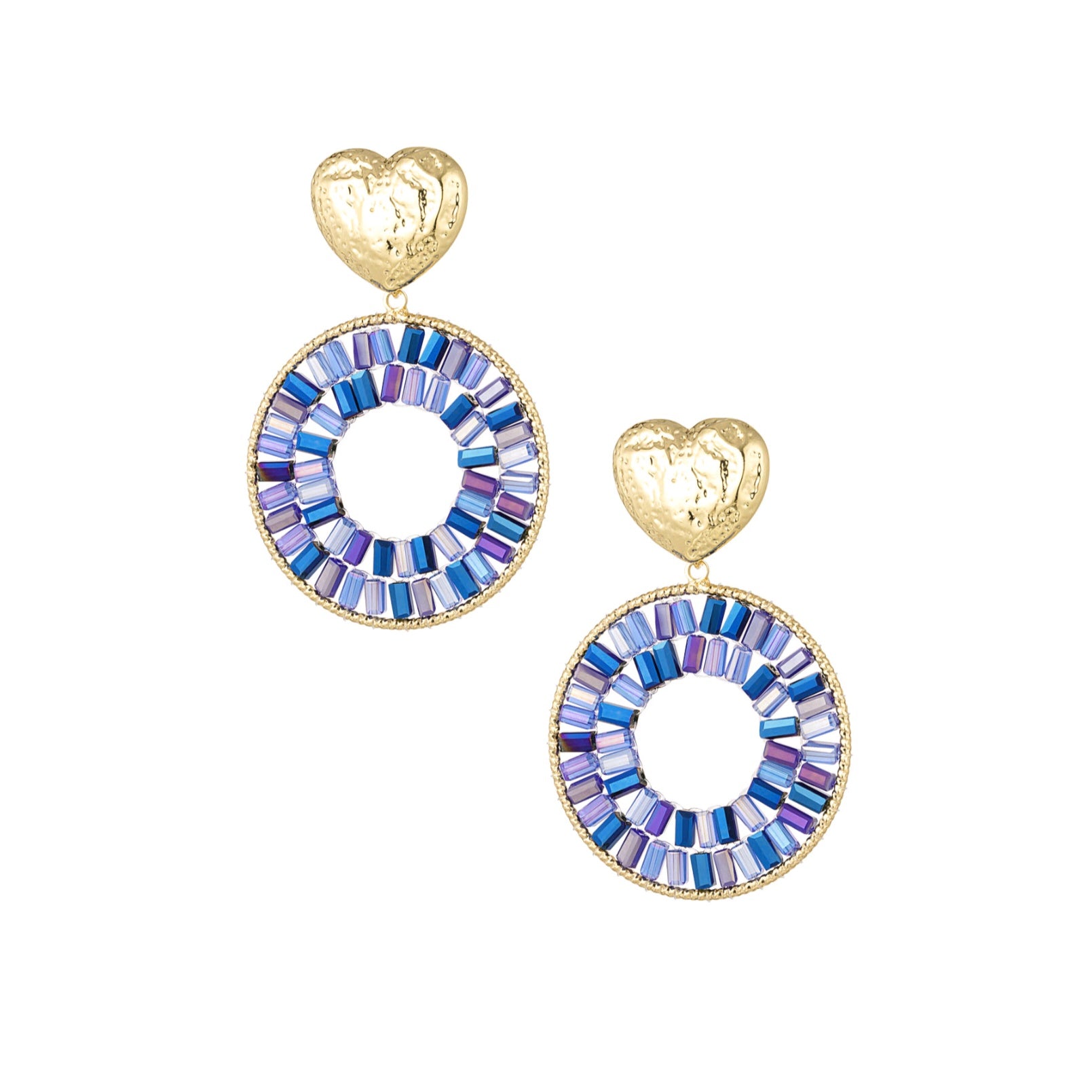 Ronde statement oorbellen met hart detail- blauw