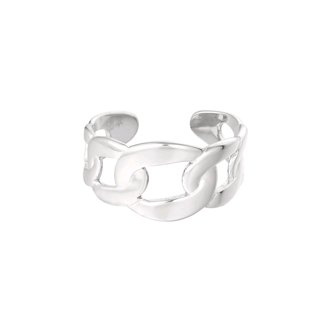 Wauw! Hoe tof is deze zilveren ring in de vorm van een mega schakel! Mega trendy en erg leuk te combineren met meerdere subtiele ringen. De ring is daarnaast erg leuk te combineren met meerdere trendy sieraden en accessoires. De ring is gemaakt van stainless steel en is one size waardoor de ring super eenvoudig te vormen is naar jouw vinger, ideaal! De ring is verkrijgbaar in de kleuren goud en zilver.