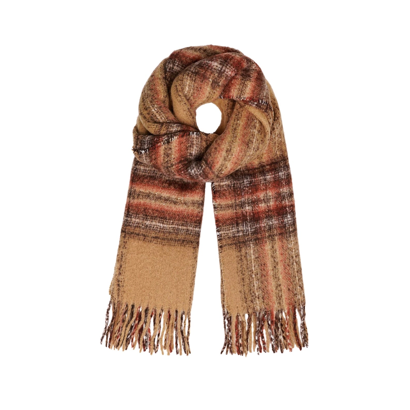 Hoe mega trendy en comfy is deze bruine/multi sjaal met gestreepte details! De sjaal is heelrijk groot waardoor je de sjaal op meerdere manieren kunt dragen. Deze trendy sjaal is lekker zacht en gemaakt van 100% acryl, afmetingen: 180 x 50 cm.
